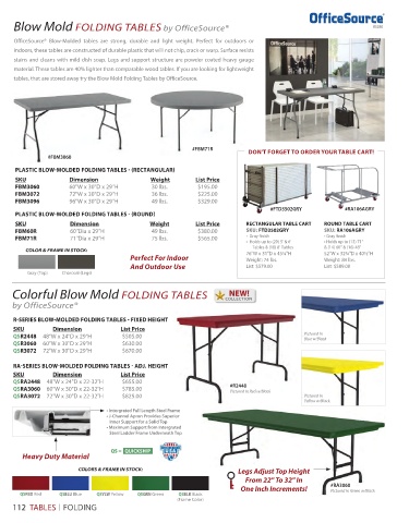 tables, that are stored away try the Blow Mold Folding Tables by OfficeSource.