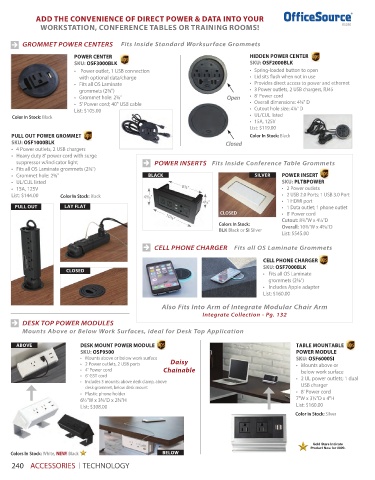 GROMMET POWER CENTERS Fits Inside Standard Worksurface Grommets