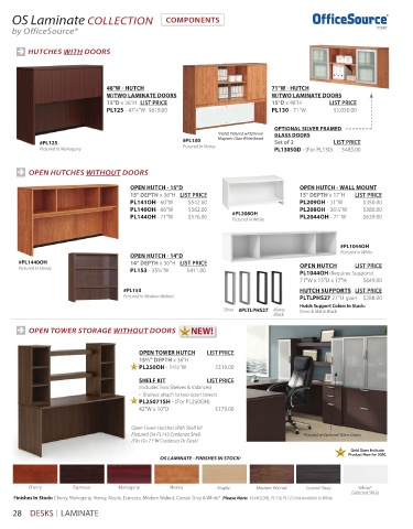 #PL1440OH 14" DEPTH x 36"H LIST PRICE OPEN HUTCH LIST PRICE
