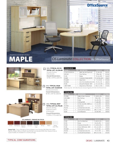 OS LAMINATE - FINISHES IN STOCK: MODEL # QTY DESCRIPTION W x D x H LIST PRICE