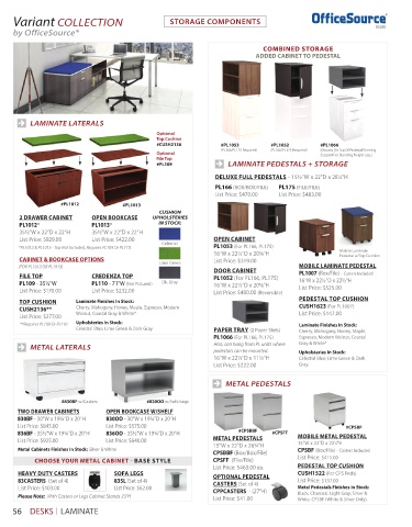 CABINET & BOOKCASE OPTIONS List Price: $319.00 Pedestal w/Top Cushion